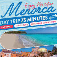 Genießen Sie eine angenehme 75-minütige Schnellfährenfahrt vom Hafen Alcúdia nach Ciutadella de Menorca und besuchen Sie eine paradiesische Insel mit traumhaften Orten.